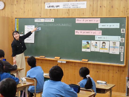 12月13日、地区の英語専門部会の授業参観が行われ、本校5年生の英語の授業を見ていただきました。今日の勉強は、アメリカ人のALTの先生に、観光案内をして、日本各地の魅力を伝えるという勉強でした。最初に、英語でよりよく伝える方法を全員で確認し、班ごとに映像で表現するための練習に取り組みました。どの班も発音や表情、ジェスチャー等に注意しながら、繰り返し練習していました。時折、英語の教科担任やお二人のALTの先生にアドバイスを受けながら、協力しあって楽しそうにタブレットに録画している姿が印象的でした。日本の魅力が伝わって、実際に足を運んでもらえるといいですね!