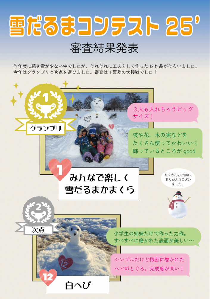 ●雪だるまコンテスト25’の結果について
