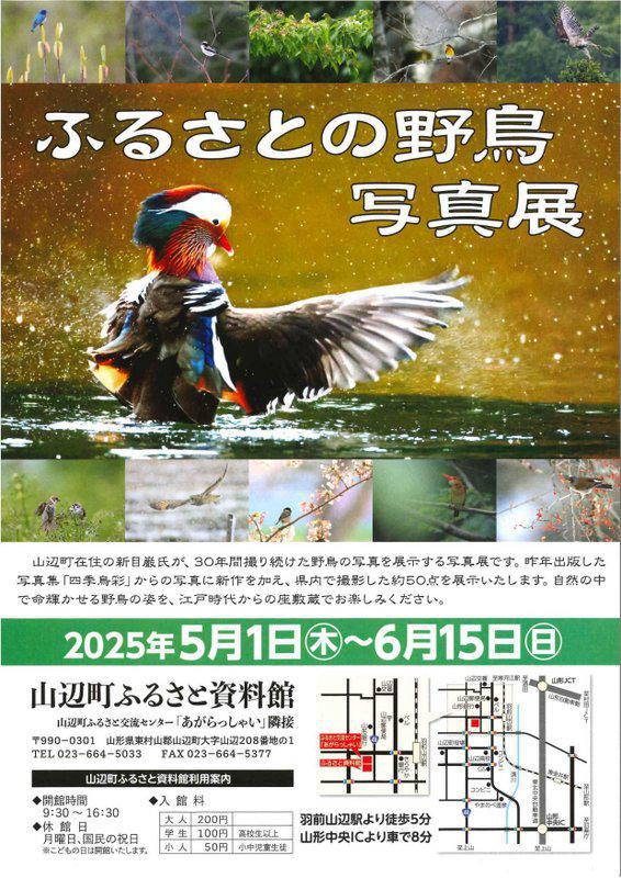 ふるさと資料館では5月1日(木)〜6月15日(日)まで「ふるさとの野鳥写真展」を開催します。ふるさと資料館の館長、新目巌氏が、30年間撮り続けた野鳥の写真を展示します。自然の中で生きる野鳥の美しい姿をぜひご覧ください。 日時:5月1日(木)〜6月15日(日) 9:30 〜16:30   月・祝は休館日 ※5/5子供の日は開館します入館料:大人200円 学生100円 小人50円