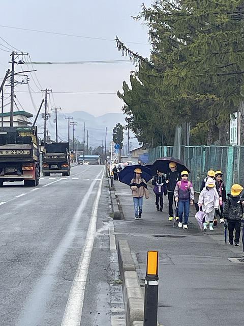 通学班で本校児童のすばらしさを見ました。横断歩道で待っていると、乗用車やダンプカーなどが止まってくれます。(道路交通法で決められていることではありますが)全員が止まってくれた車が動いて通過するまで、並んでお辞儀をしているではありませんか!一小の誇れるところです。避難訓練も行いました。写真を撮っている暇がなかったので、(頼んでもいなかった)ので、写真はありません。