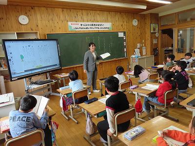 今日は午後から授業参観がありました。その後 学校後援会総会、PTA総会、学年部会がありました。1年生 ひらがなの学習2年生 回文の学習 グループでも話し合っています。3年生は音楽 楽譜を見てリズム打ち4年生はタブレットを使って13桁の一億を超える数の学習5年生 1立方メートルの学習 実際にグループで作ってみました。6年生 線対称と点対称のまとめをしていました。答えを友達どうして確かめ合っています。ひだまり学級では自立の学習をすすめていました。持ち物は何?
