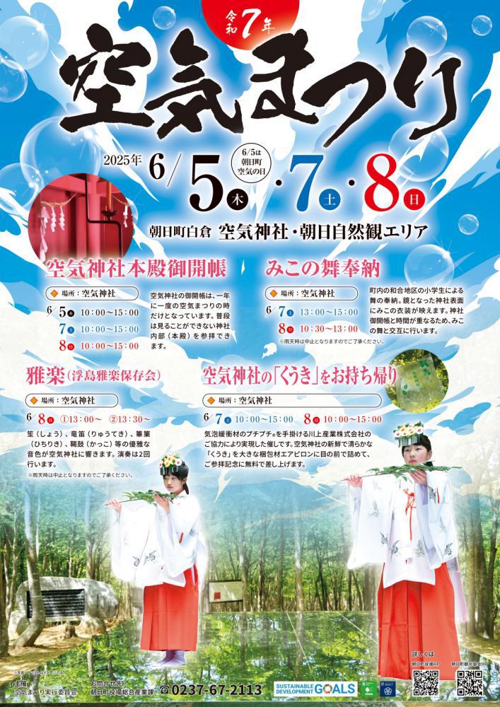 【2025年】空気まつり|空気神社で開催される幻想的なイベント2025年6月5日・7日・8日の3日間、山形県朝日町の「空気神社」で恒例の「空気まつり」が開催されます。神事やみこの舞、エコフェアなど、自然と調和した神聖な空間で特別な時間を過ごしませんか?令和7年 空気まつり山形県朝日町・空気神社で開催!「空気への感謝」をテーマに、自然と調和した神聖な空間「空気神社」で開催される夏の恒例行事「空気まつり」。令和7年度も多彩な催しを通して、訪れる人々に癒しと感動をお届けします。 開催概要 開催日2025年6月5日(木)、7日(土)、8日(日) 会場空気神社(山形県西村山郡朝日町白倉地内) アクセス朝日町役場から車で約20分 主なイベント内容 神事・みこの舞空気神社の神聖な雰囲気の中で行われる神事と、優雅なみこの舞が奉納されます。 エコフェア自然と共生する朝日町ならではの催し。工作体験などを通じて環境への理解を深めます。 物産品販売地元の特産品やグルメが並びます。軽食販売や各種出店もあり、お祭り気分を楽しめます。 関連情報 空気まつりチラシ(PDF) 朝日町HP朝日町の観光パンフレットはこちら{"@context":"https://schema.org","@graph":[{"@type":"Event","name":"令和7年 空気まつり","startDate":"2025-06-05","endDate":"2025-06-08","eventStatus":"https://schema.org/EventScheduled","eventAttendanceMode":"https://schema.org/OfflineEventAttendanceMode","isAccessibleForFree":true,"location":{"@type":"Place","name":"空気神社","address":{"@type":"PostalAddress","streetAddress":"白倉地内","addressLocality":"朝日町","addressRegion":"山形県","addressCountry":"JP"}},"image":["https://ssl.samidare.jp/~lavo/yamagatakouiki/box/0_%E7%A9%BA%E6%B0%97%E3%81%BE%E3%81%A4%E3%82%8A.jpeg"],"description":"「空気への感謝」をテーマに、自然と調和した神聖な空間「空気神社」で開催される夏の恒例行事。神事やみこの舞の奉納、エコフェア(工作体験)、地域の物産販売などが楽しめます。","organizer":{"@type":"Organization","name":"朝日町観光協会"}},{"@type":"Article","mainEntityOfPage":{"@id":"https://yamagata-kouiki.info/"},"headline":"【2025年】空気まつり|空気神社で開催される幻想的なイベント","author":{"@type":"Organization","name":"やまがた広域観光協議会","url":"https://yamagata-kouiki.info/"},"publisher":{"@type":"Organization","name":"やまがた広域観光協議会","logo":{"@type":"ImageObject","url":"https://yamagata-kouiki.info/images/logo.png"}},"datePublished":"2025-06-01T10:00:00+09:00","dateModified":"2025-09-18T08:00:00+09:00"}]}document.addEventListener("DOMContentLoaded", () => { const sections = document.querySelectorAll(".section-fade"); const observer = new IntersectionObserver( entries => { entries.forEach(entry => { if (entry.isIntersecting) { entry.target.classList.add("visible"); observer.unobserve(entry.target); } }); }, { threshold: 0.1 } ); sections.forEach(section => { observer.observe(section); }); });.aikiji_honbun{font-family:'M PLUS Rounded 1c',sans-serif;background-color:#f8f8f8 !important;color:#333;font-size:16px;line-height:1.8;padding:20px;}.hero-section{background:linear-gradient(135deg, #a8e063, #56ab2f);color:#fff !important;padding:30px 20px;border-radius:12px;text-align:center;margin-bottom:40px;box-shadow:0 6px 20px rgba(0,0,0,0.1);border:2px solid #fff;}.section-wrapper{margin-bottom:50px;}.section-title{font-size:1.6em;font-weight:bold;color:#333;margin:50px 0 25px 0;padding-left:15px;border-left:5px solid #008080;display:flex;align-items:center;}.section-title i{margin-right:12px;color:#008080;}.info-box{background-color:#fff;border:1px solid #b2dfdb;border-left:5px solid #80cbc4;border-radius:8px;padding:20px;}.info-box ul{list-style:none;padding:0;margin:0;}.info-box li{display:flex;align-items:flex-start;padding:10px 0;border-bottom:1px dashed #e0f2f1;}.info-box li:last-child{border-bottom:none;}.info-box i{font-size:1.2em;margin-right:15px;color:#008080;width:20px;text-align:center;padding-top:4px;}.info-label{font-weight:bold;display:block;margin-bottom:3px;}.highlight-grid{display:grid;grid-template-columns:repeat(auto-fit,minmax(250px,1fr));gap:20px;}.highlight-card{background-color:#fff;padding:20px;border-radius:8px;border:1px solid #eee;box-shadow:0 2px 5px rgba(0,0,0,0.05);text-align:center;}.highlight-card i{font-size:2.5em;color:#008080;margin-bottom:10px;}.highlight-card h4{font-size:1.2em;font-weight:bold;color:#333;margin:0 0 5px 0;}.highlight-card p{font-size:0.9em;margin:0;color:#555;}.button-container{display:flex;justify-content:center;gap:20px;flex-wrap:wrap;margin-top:50px;}.link-button{display:inline-block;background:linear-gradient(to right, #008080, #004d40);color:#fff !important;padding:13px 28px;text-decoration:none;border-radius:8px;font-weight:bold;font-size:1.04em;transition:box-shadow 0.2s, background 0.2s;box-shadow:0 2px 12px #00808033;}.link-button:hover{background:linear-gradient(to left, #008080, #004d40);box-shadow:0 4px 16px #00808044;}.link-button i{margin-right:8px;}