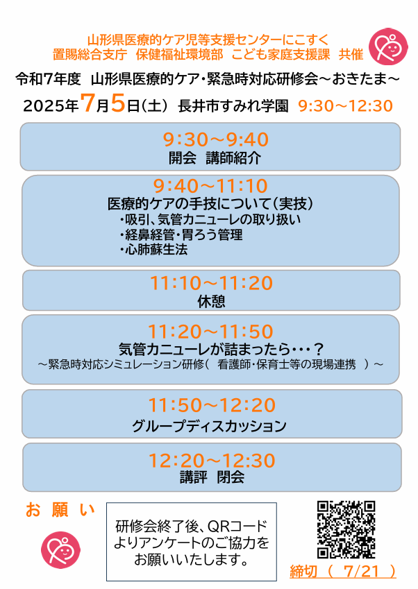 ●【ご案内】令和7年度山形県医療的ケア・緊急時対応研修会〜おきたま〜 参加者募集