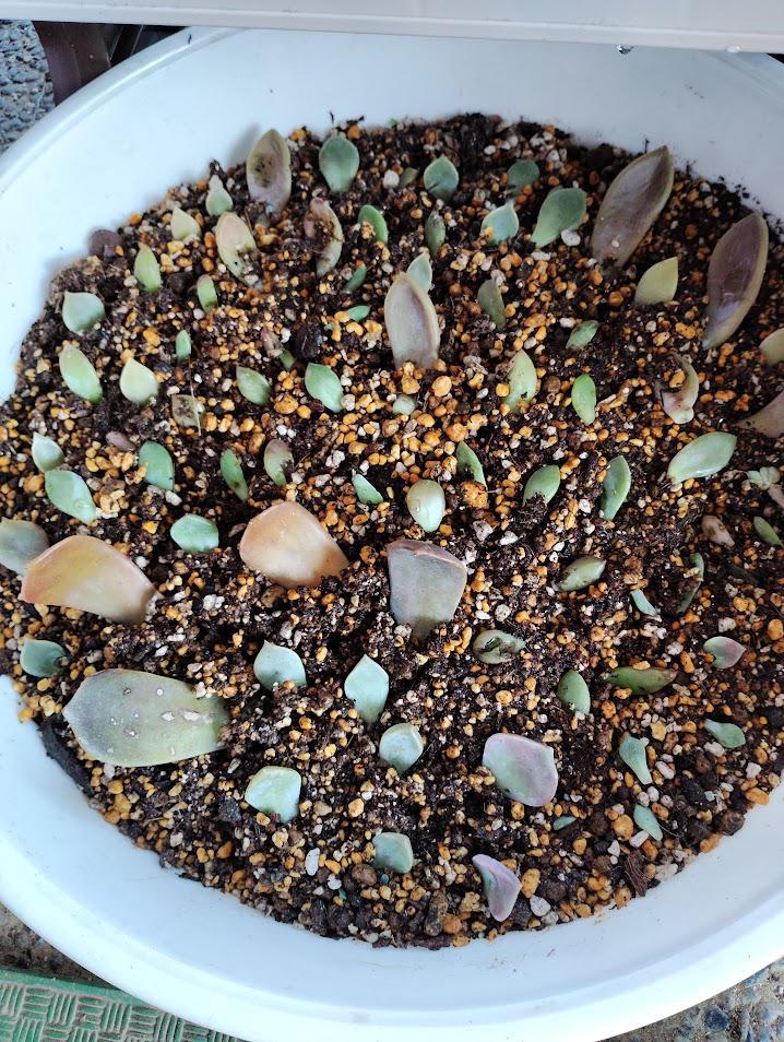 葉挿ししていた多肉ちゃんたちに、ようやく小さくこどもが生まれてきましたっ(*'▽')寄せ植えの伸びすぎて切ったところからも!!この調子で、どんどん育って欲しいです(*´ω`*)嬉多肉の葉挿しもスペースが足りなくなってきました…どれくらい、こどもが生まれて成長するのか毎日楽しみです!!