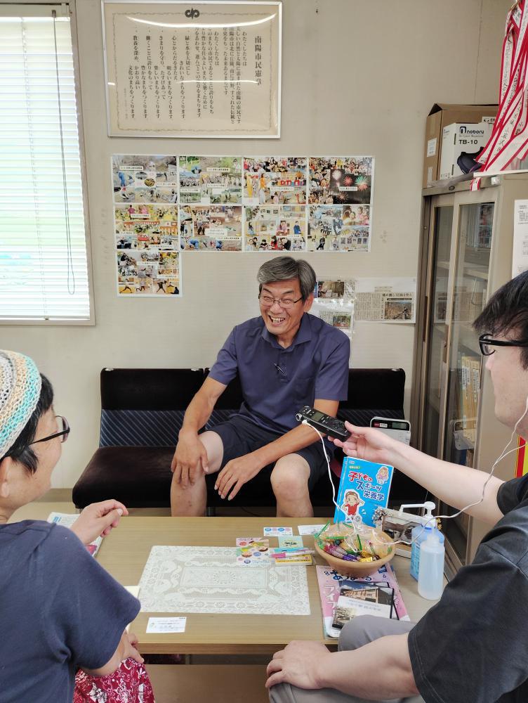 中川のために陰に日向にご尽力くださっている、我らが中川地元応援隊長に…ついに!エフエムNCVおきたまGO!さんより取材が入りましたよーー\(^o^)/オメデトー本日、中川公民館にてインタビューを受ける隊長の勇姿を…許可をいただいて私も撮影させて貰いました(#^_^#)隊長!いつも中川のために楽しい企画や取材の依頼、岩部山の整備、ガイドと…数限りないご助力ありがとうございます!ぜひ、地区の方も隊長のもとで一緒に中川を盛り上げていきましょう!これからもよろしくお願いいたします(≧∇≦)b