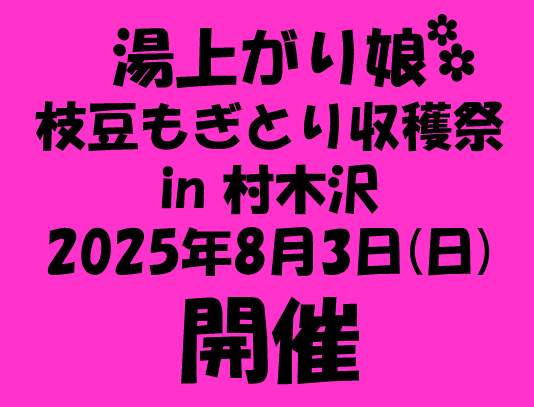 おはようございます!あじさい営農 組合です♪本日8月3日(日)8:00〜枝豆もぎとり収穫祭in 村木沢 開催!!品種:湯上がり娘となります。本日も気温が高くなる予報です!ご参加される方、各自熱中症対策をお願い致します。それでは、会場で皆さまにお会いできますこと職員一同楽しみにしております★