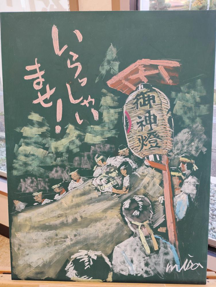 敬老の日ですね。自宅用に敬老の菓子でも…と、赤湯の【六味庵】さんにお邪魔したら、入ってすぐに迫力の黒板画が……(`・ω・´)スゴイ!カッコイイ!!若者獅子の迫力が伝わってきます…なんと、お店の若奥さまがお描きになっているとのこと(≧∇≦)b感動☆金つばと羽子板ゆべしを購入しました(*^-^*)お菓子ももちろんオススメです!
