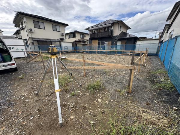 みなさん、こんにちは。私が担当しております新築現場の工事が着工致しました。建物の位置や高さの確認が完了しました!!安全第一で工事進めて参ります!