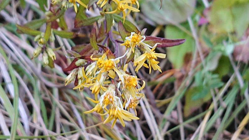 ●花を探しにのぼった烏帽子山公園でなんと咲いている「アキノキリンソウ」を見つけました 以前にもこのブログで紹介しましたが枯れかかっておりこれが見納めと思われます 咲いている花を見つけてうれしくなりました 10月に紹介しましたが秋の花で 和名のキリンソウは黄色の花が多数集まて咲くことから「黄輪草」と名付けられその後「麒麟草」となったという説もあるそうです