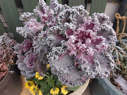昨日29日の長井は朝から寒く最低気温はなんと▲7.3℃!12月からこんな寒さなんて体もビックリです。朝の寒い中、外に出て見たらもう鉢物も氷ついて… (トップ写真)は去年から持ち越した葉ボタンですがきれいです! ↓すっかり葉も無くなった夏ツバキの木ですが『鳥の巣』を発見! 午後からは、晴天、素晴らしい青空デス。それでも気温は一日マイナスで終わりました。 玄関もクリスマスからお正月バージョンに変わりました。 南天はすっかり鳥の餌になってしまい直売所から安かったので購入しました。 ↓じーじがネットで取り寄せてくれたお正月用の寄せ植えです。 ↓今年のお正月花は・・・今年は、変わった色の葉ボタンが気に入り他の花材もポピーさんと一緒に選んで…余っていた南天も入れてお正月風に。モンステラでボリューム満点です(^^) 今年もあっという間に一年が終わります。なんと早いこと・・・ 我家のブログ『ガーデンライフ〜バラ庭in長井』に今年もたくさんの方にお越しいただきありがとうございました。 ”さみだれ”は山形県内の会社で運営されているサイトです。 このブログも2019年2月から始めて、もう7年近くになります。当初は、『ローズガーデン』でスタートしましたが、年齢とともにバラも終活、宿根草の庭づくりを始めているじーじとばーばのプライベートガーデンになっています。これからは花ネタも無くなるので去年と同様に冬休みになります。 来年は・・・ 来年の春には、再開できるかはわからないですが庭づくりは変わらずスローライフで続けていけたらと思っています。じーじとばーばのつたないコラボブログにたくさんの方に訪問頂き、また、応援頂き感謝申し上げます。 皆さん、よいお年をお迎えください。