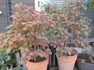↓先日、鉢の土替えした”スモークツリー”