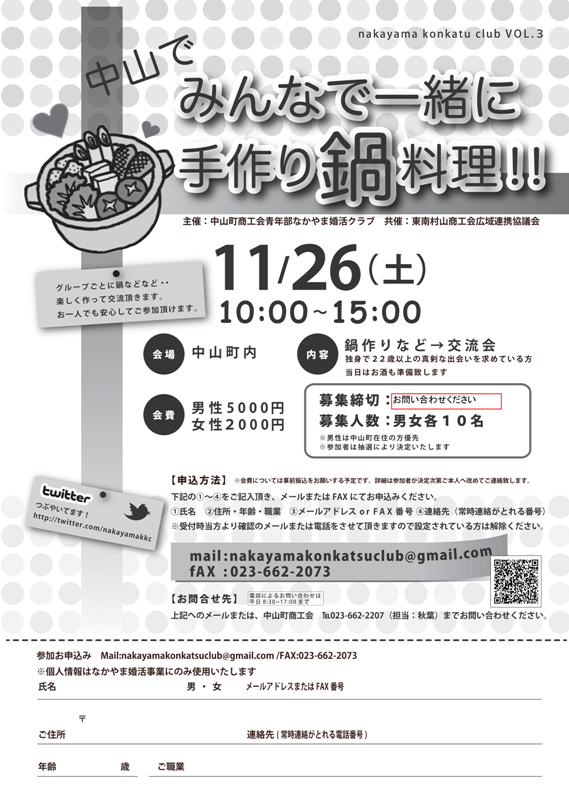 お問い合わせお申込みは下記アドレスまでお願い致します。nakayamakonkatsuclub@gmail.com