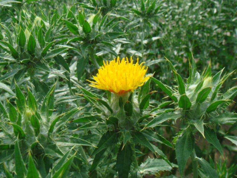 ひと足先に、ガラスハウスの最上紅花が開花いたしました。