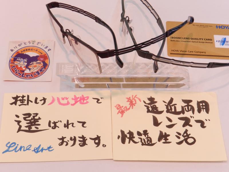 フレームは色違いですが、お二人とも慣れやすい遠近両用レンズ[BOOM]でご注文頂きました。