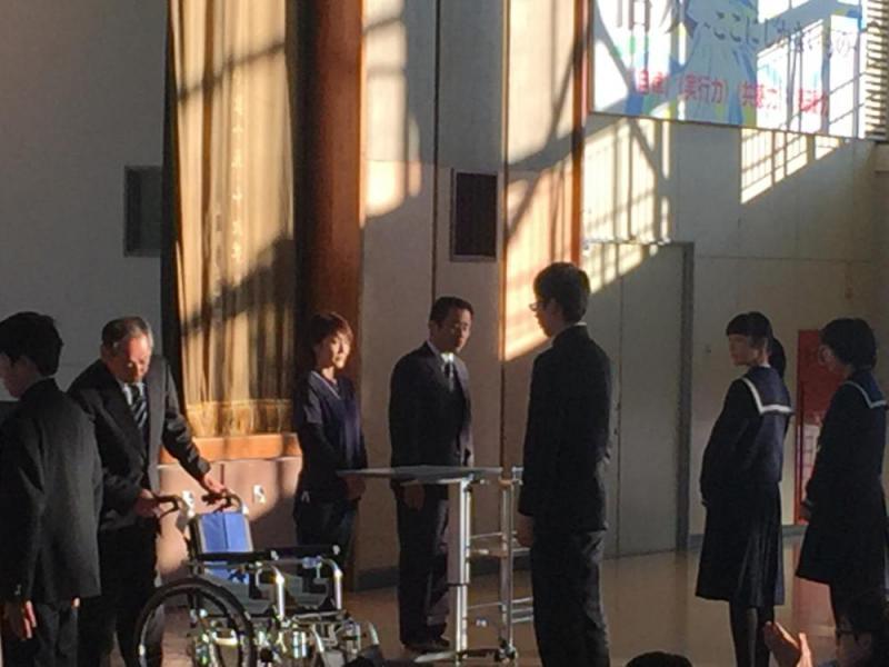 ●朝日町立朝日中学校からの福祉用具等贈呈