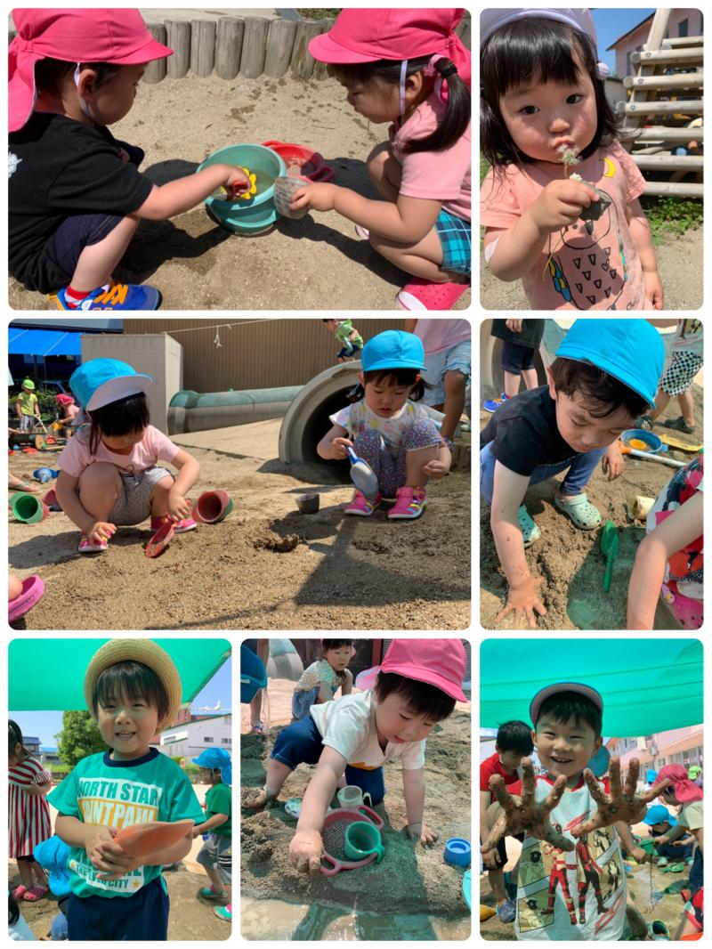 笑顔で泥遊びを楽しんでいました( ¨̮ )