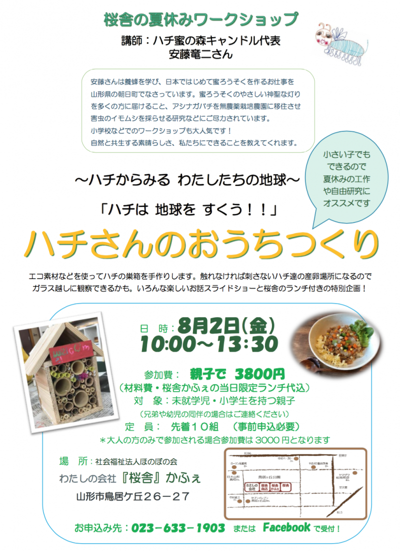山形市の『桜舎』さんの夏休みワークショップに呼んでいただくことになりました!