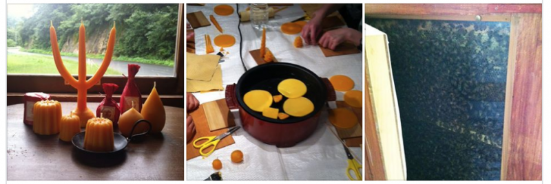 キャンドル販売とキャンドル作り体験(事前予約)・ガラス越しにミツバチ観察(無料)ができます。お待ちしております!