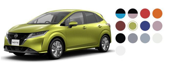 日産新型ノート すごい魅力的です。ほしい。でも、ボディカラーがいまいち。CMに出てくるイメージカラーのビビッドブルー/スーパーブラック 2トーンだと、とっても未来感があっていいんだけど、単色にすると一気に普通の車になっちゃう。ほしいカラーがない。それと気になっちゃうのがリア。下の写真の○の部分が、なぜ切れているのか?一体であってほしい。それと絶対付けたいオプションが高すぎる。ヘッドライトなんか標準はハロゲンヘッドだからもう最悪。