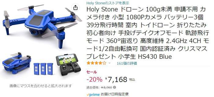 100g以下の登録とか免許のいらないトイドローン買っちゃいました。大きさは、手のひらサイズで室内で飛ばすのが最適です。練習して孫といっしょに遊びたいと思います。カメラ付きですが、ウェブ動画を見ると、カクカクして実用には耐えられないみたい。スマホを見ながらの操縦は無理みたい。あくまでも初めてのドローンで練習用なので、これでOKです。これでも何日も悩みました。この悩みが好きなんですが。アマゾンに昨日注文して本日届きます。楽しみ!