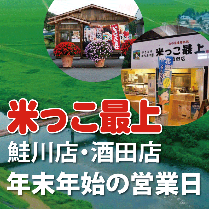 米っこ最上 鮭川店・酒田店 休業日 12/31〜1/3 1/4から営業します。