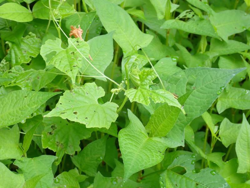 映像では同系色でハッキリしませんが2mぐらいに伸びたミヤマニガウリが見られます。