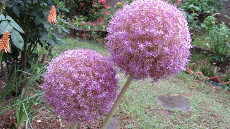 ●隣の家から花瓶にたててくださいと大きくて丸い薄紫色の葉をいただきました よく見てみると小さな葉が集まって大きな花となって咲いています しらべてみると「アリウムギガンジウム」でしょうか アリウムには約700種の野生種があり、ニンニクやネギも同じ仲間だそうです 主に、花茎が長い大型種は切り花としてされています。葉のない長い花茎とその頂部に傘形または球状の花序がつく姿はほかの草花にはないユニークさがあり、また花もちもよいので、生け花やフラワーアレンジメントに利用され人気があるそうです