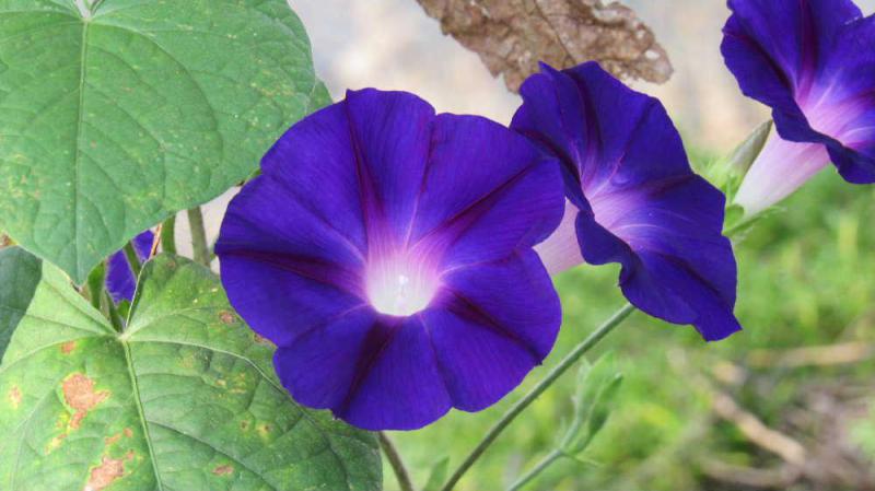 ●散歩で見つけたアサガオが鮮やかに咲いています でも我が家の「西洋アサガオ」は茎がヒョロヒョロと伸び、葉っぱが枯れて全く花を咲かせてくれません 例年だと薄暗くなるほど葉が生い茂るグリーンカーテンとして楽しませてくれているのですが 毎日欠かさず水をやっているのですが土がダメだったのでしょうか それともこれから涼しくなってくると花を咲かせてくれるのでしょうか