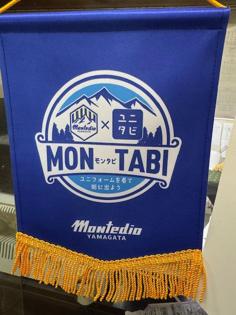 Jリーグチームのユニホームを着て旅をする、それを推進するユニタビ、ここ山形は、モンテディオ山形があるので、モンタビとして、モンテディオ山形の試合があるときにユニホームを着ていろんなお店を巡ってもらうためにいろいろと仕掛けています。今年からの取組で、徐々にモンタビの加盟店が増えてきています。うちも加盟していますが、もっともっとユニホームを着て巡る人を増やしたい。Jリーグを盛り上げよう〜