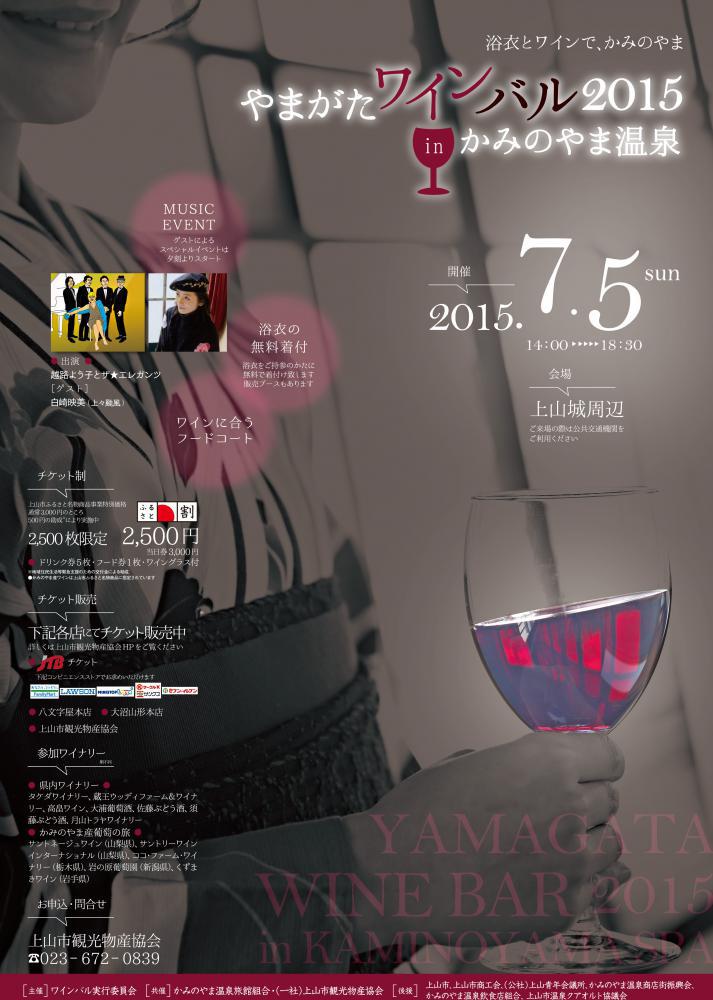 イベント情報です♪心地よい香りと豊かな味わいが自慢のかみのやま産のワインや、味わい深い県内外のワイン、そしてワインに合う様々なフードを楽しめるイベント『やまがたワインバル』を今年も開催されます。皆さん奮ってご参加下さいね。-------------------------------------------------山形県かみのやま温泉 日本の宿古窯 公式ホームページ /旅館古窯公式Facebookページ:http://www.facebook.com/ryokan.koyo