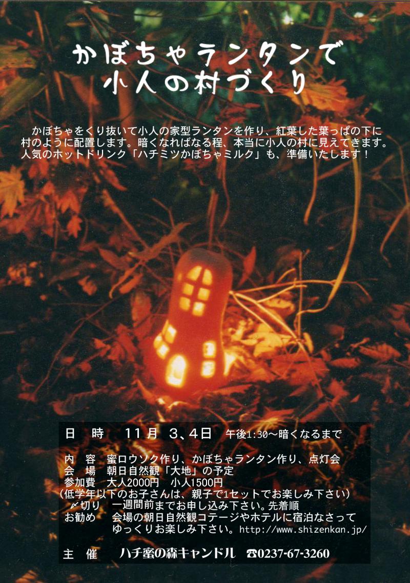 内 容 蜜ロウソク作り(ねんど式100g)→かぼちゃランタン作り→点灯会