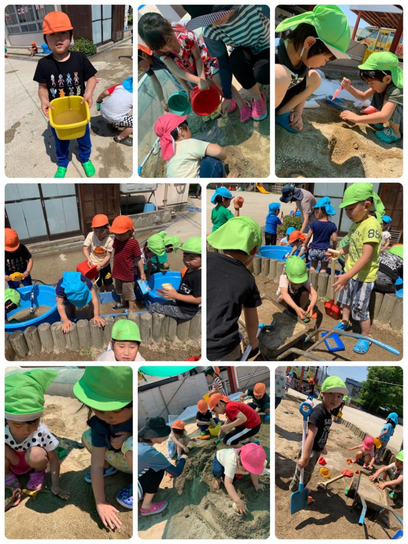 始まりと同時にお友達と川やダムをつくったり