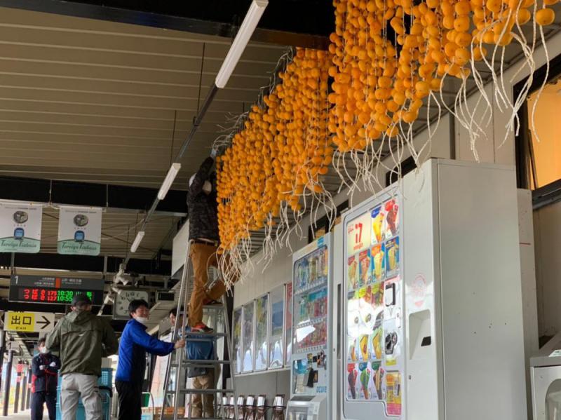 かみのやまの冬の風物詩「紅柿のれん」を、今年も市内に展示します。是非ご覧ください。 展示期間:2020年11月7日(土)〜2021年1月6日(水)予定 ※柿の状態により撤去が早まる場合があります展示場所:JRかみのやま温泉駅ホーム、かみのやま温泉観光案内所、武家屋敷、楢下宿、かかし茶屋、JR山形駅新幹線ホーム ★紅干し柿★蔵王からの冷風と日中のやわらかな冬の日差しにより、渋の強い紅柿は濃厚な甘みの干し柿になります。干し柿の販売は12月中旬〜の予定です。
