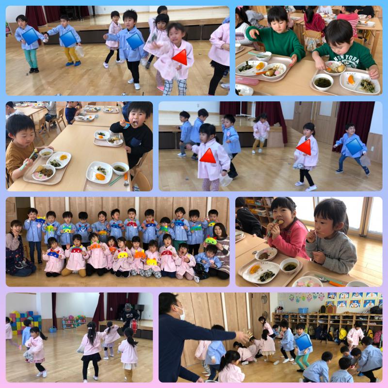 また、この日の給食は鬼プレートで、みんな美味しそうに食べて鬼をやっつけました(*•̀ᴗ•́*)و ̑̑
