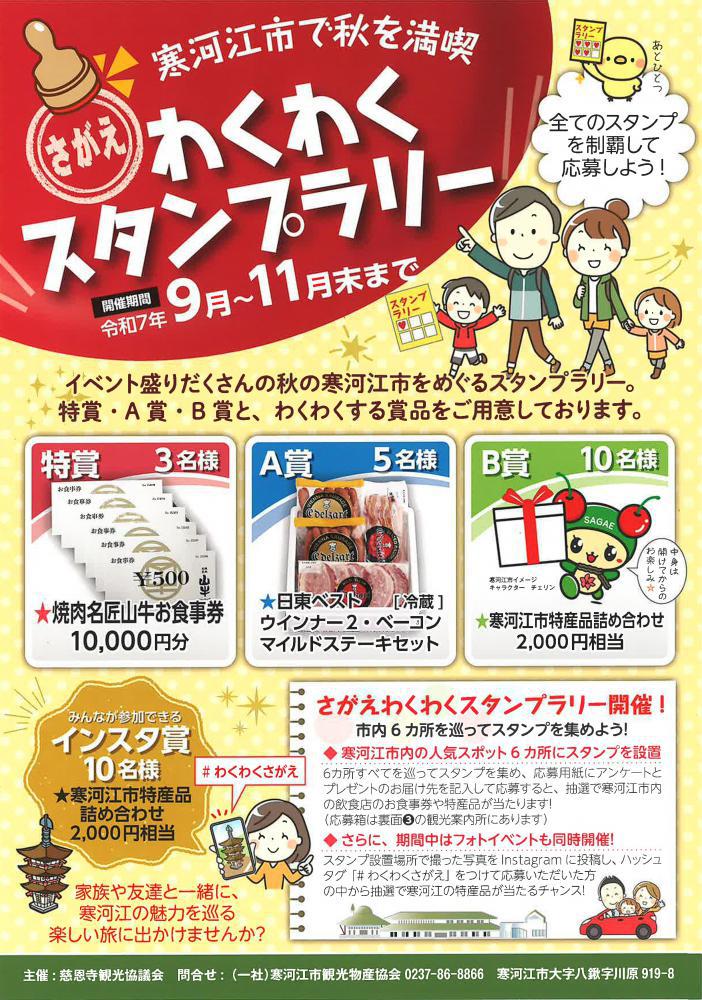 ●【2025年秋】寒河江市わくわくスタンプラリー開催!豪華賞品GETのチャンス!